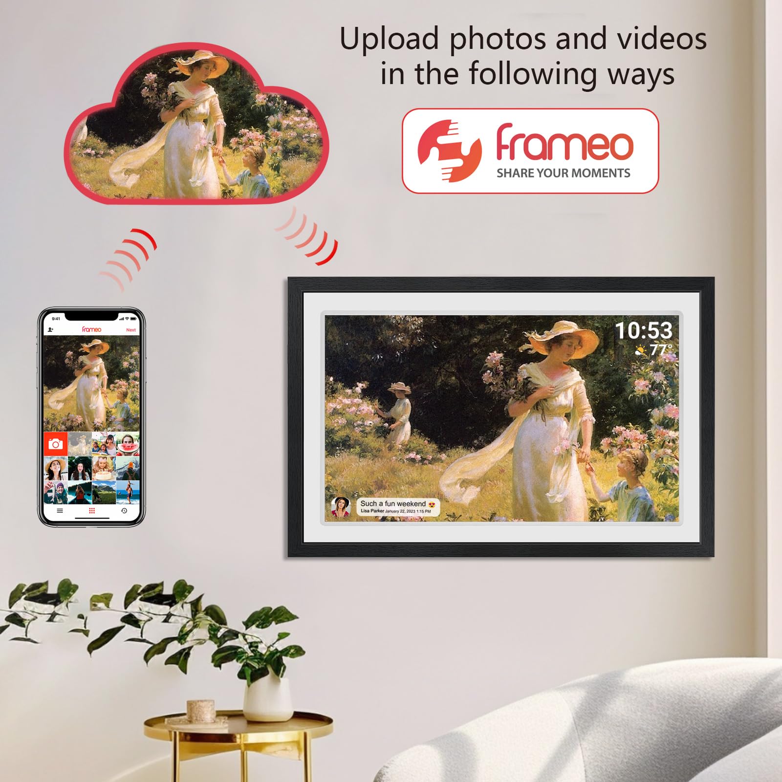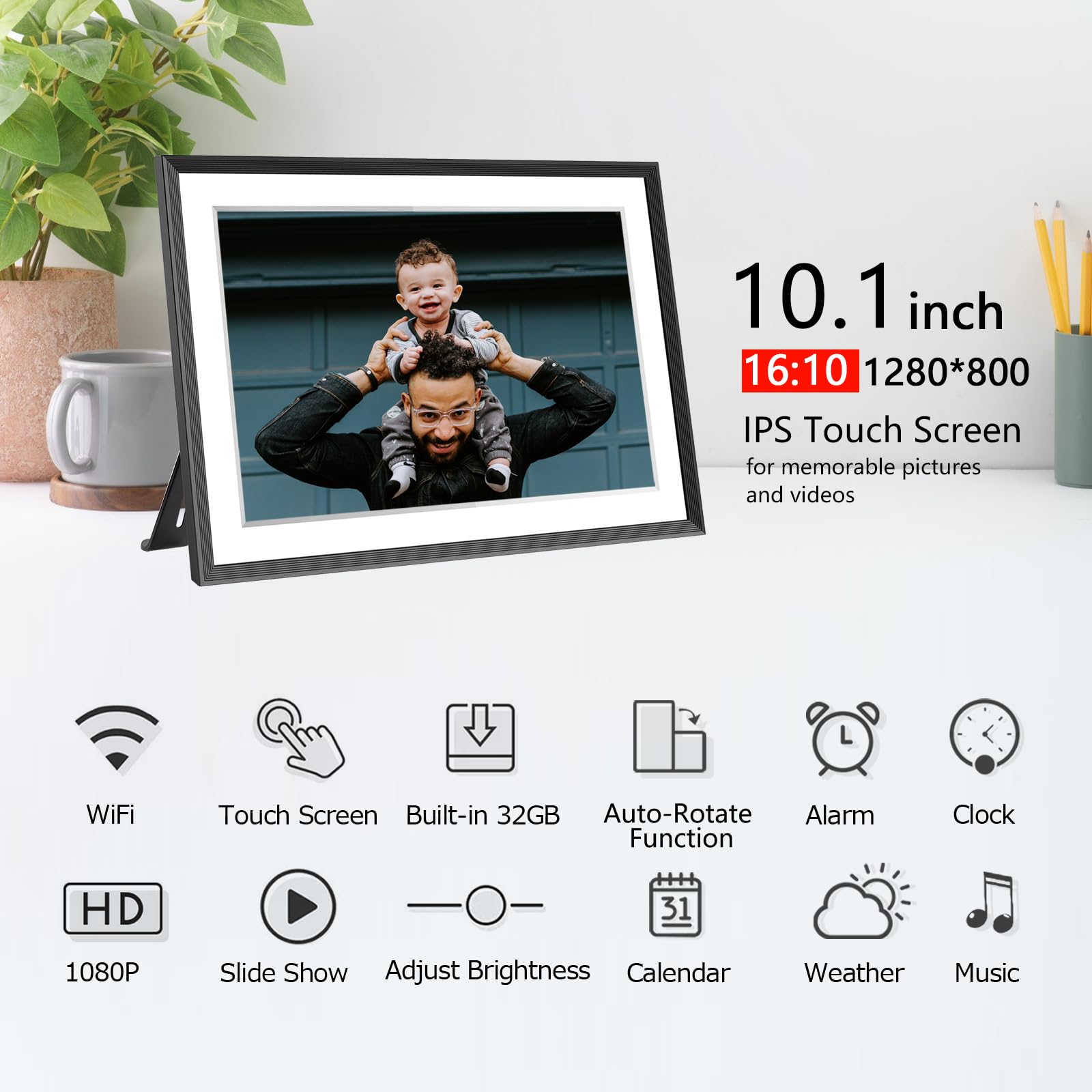 32GB FRAMEO 10.1 Inch Smart WiFi Digital Photo Frame 1280x800 IPS LCD Touch Screen, Auto-Rotate Portrait and Landscape, Built in 32GB Memory, Share Moments Instantly via Frameo App from Anywhere