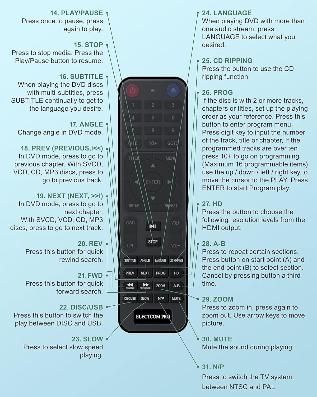- NOTE: This is a HDMI DVD player, unable to play Blu-ray Discs!