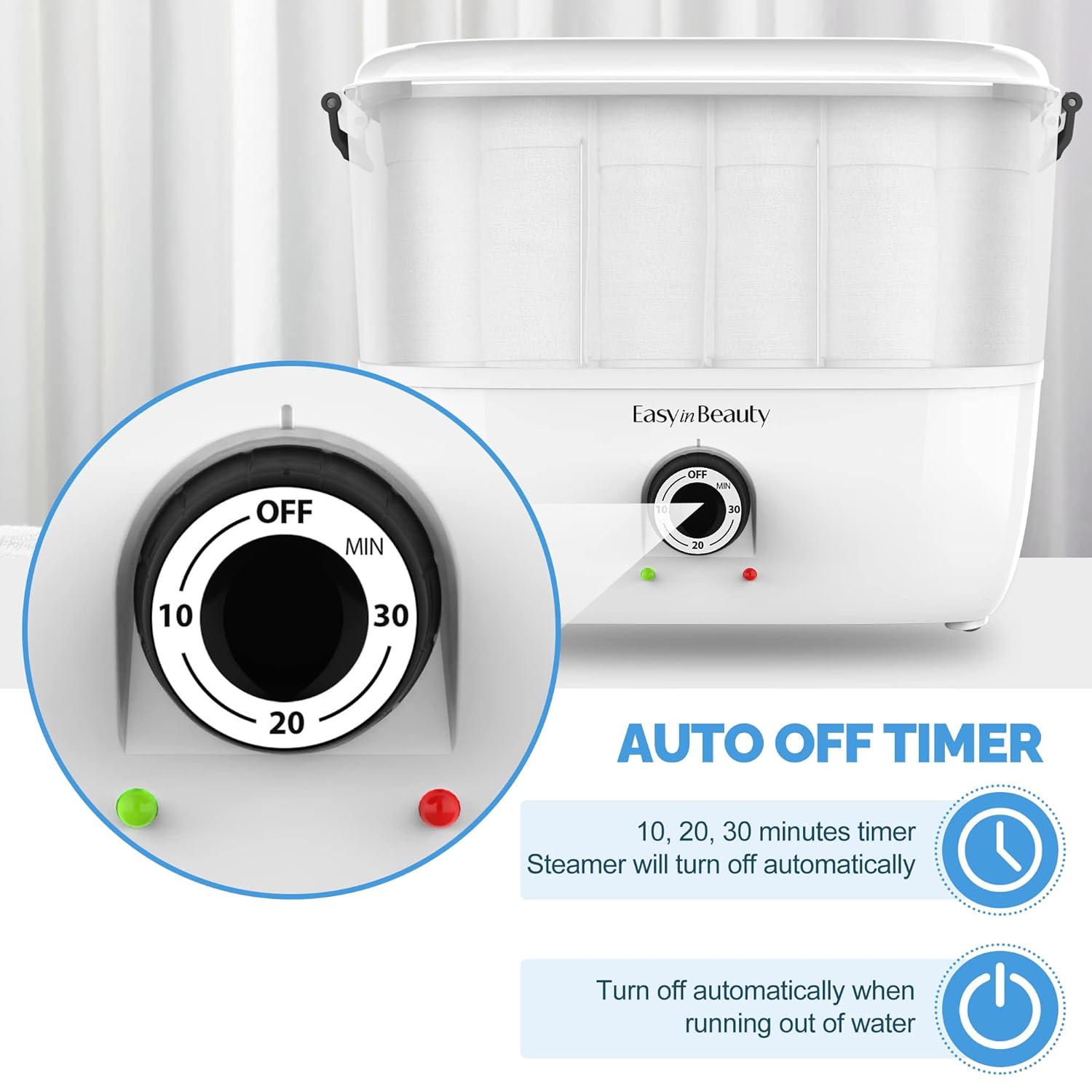 - Safe Use: This luxury towel steamer features a timer that can be set to 10, 20, or 30 minutes and will automatically turn off when it reaches the set time, or when there is water shortage to avoid overheating and ensure safety.