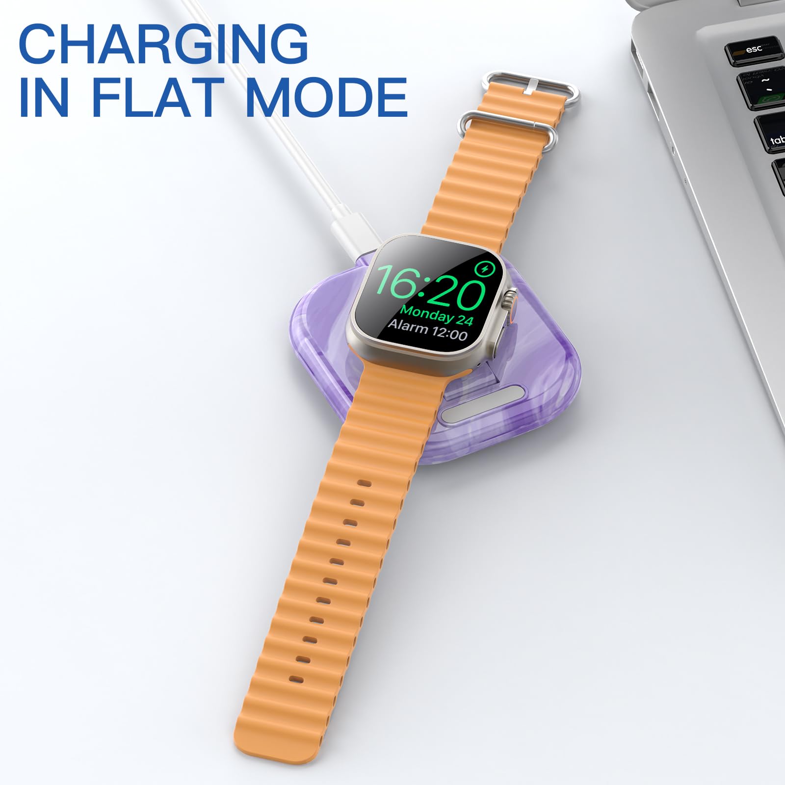 - Compact and Travel-Friendly Design: This sleek, portable charging stand is designed for easy storage and portability. Its lightweight and compact build make it the perfect travel companion. Keep your Apple Watch powered up wherever you go — no more worrying about running out of battery while traveling or on the move.