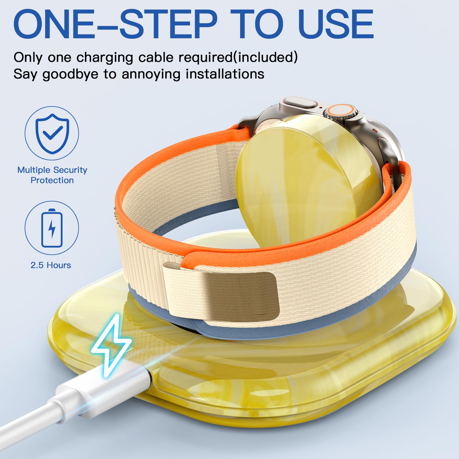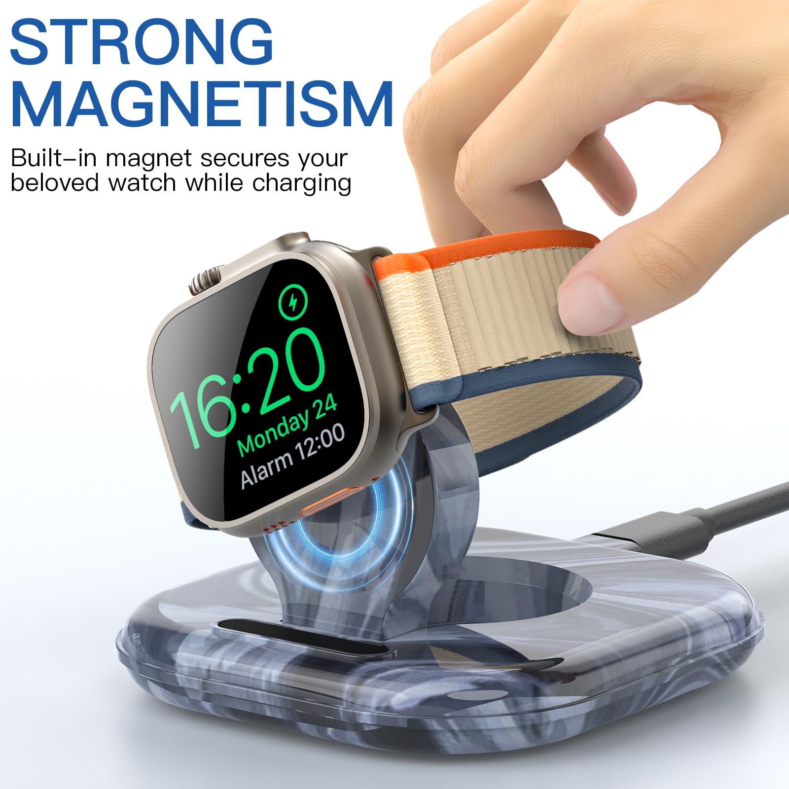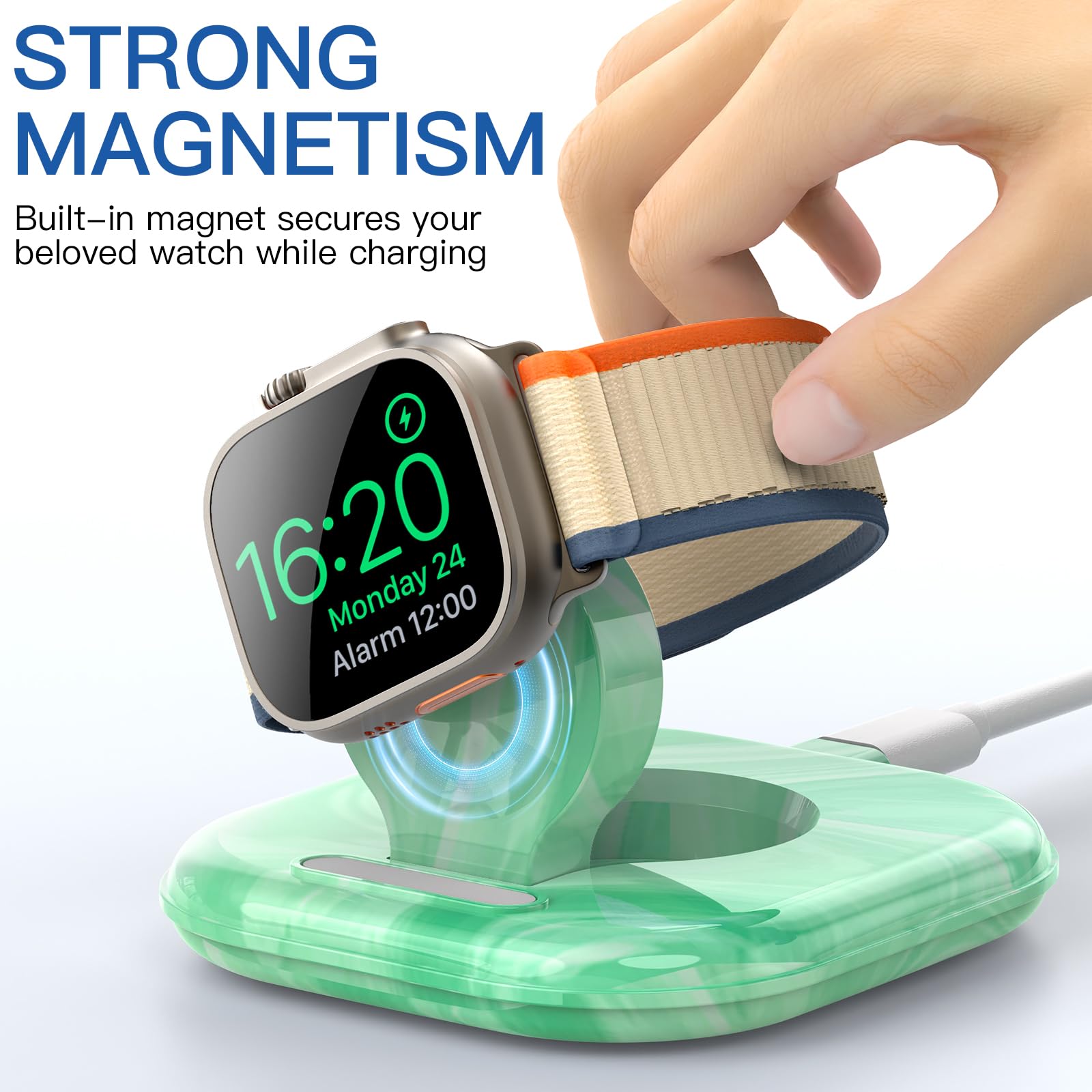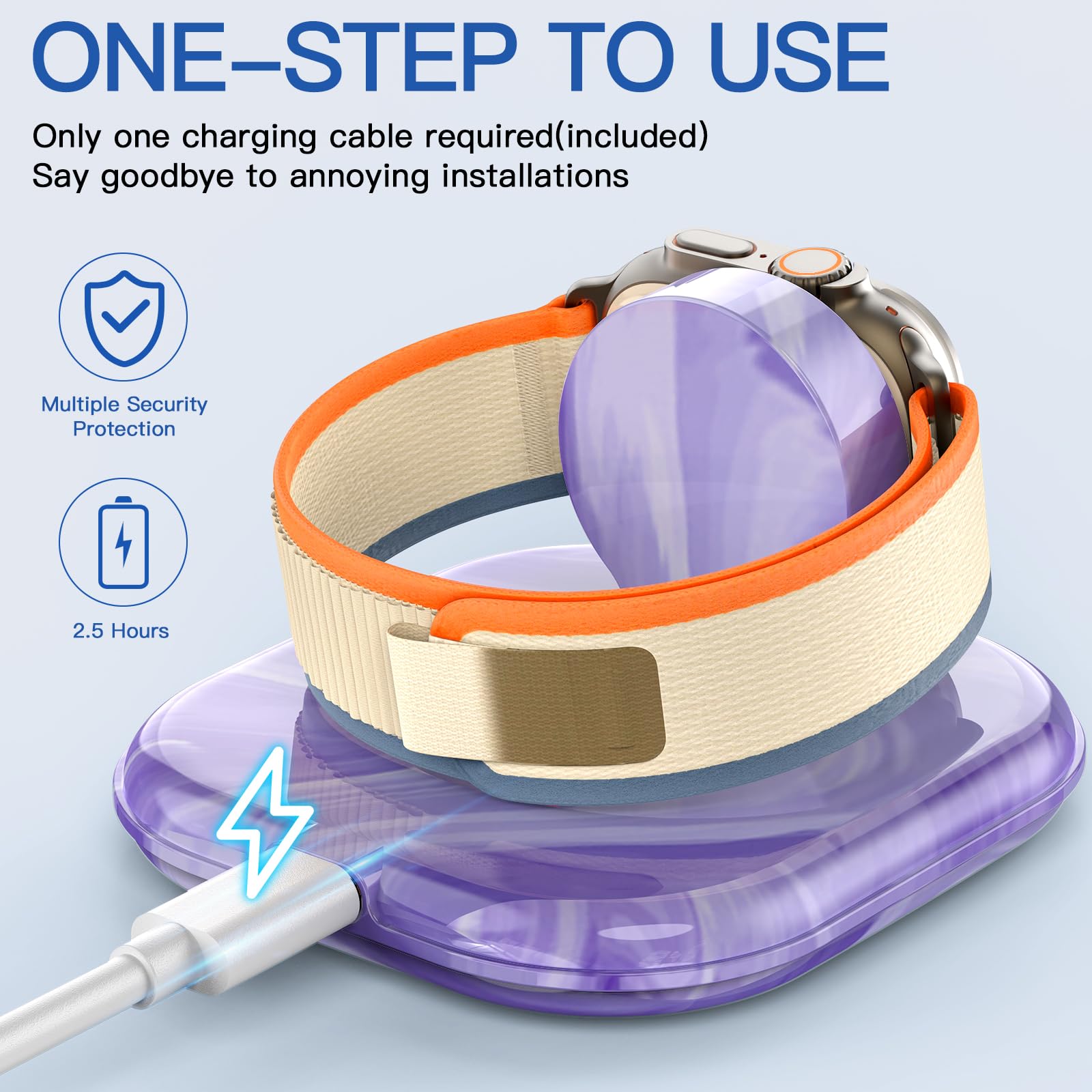 - Efficient Charging: Our Apple Watch wireless charger ensures your watch powers up quickly, whether you have a Series 2 or the latest Apple Watch Ultra. Designed for efficient charging, it helps you save time and stay ready to go with a fully charged device