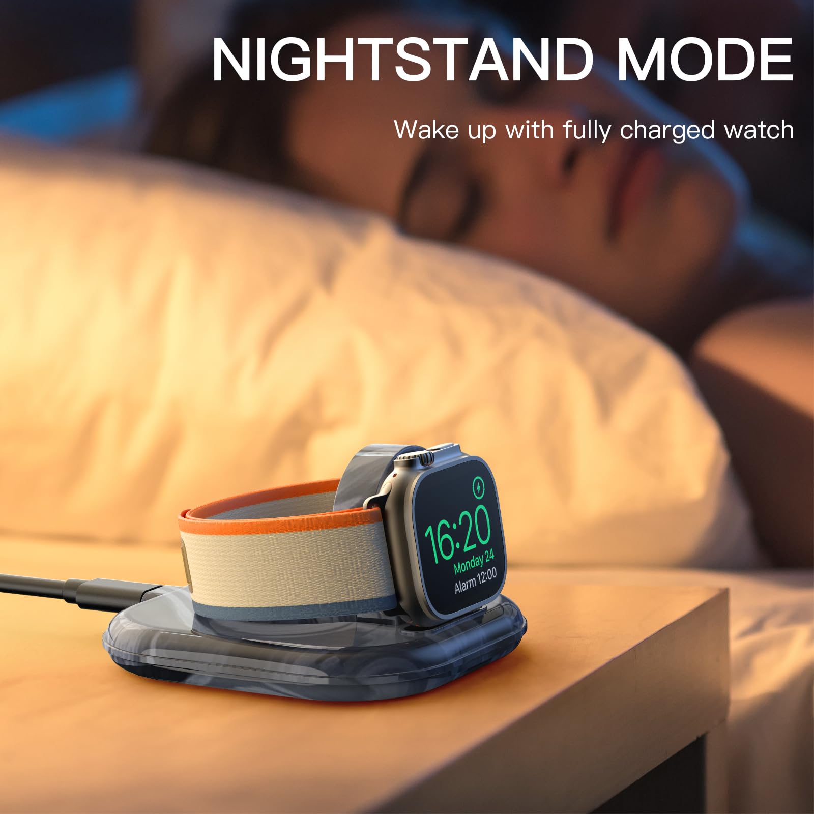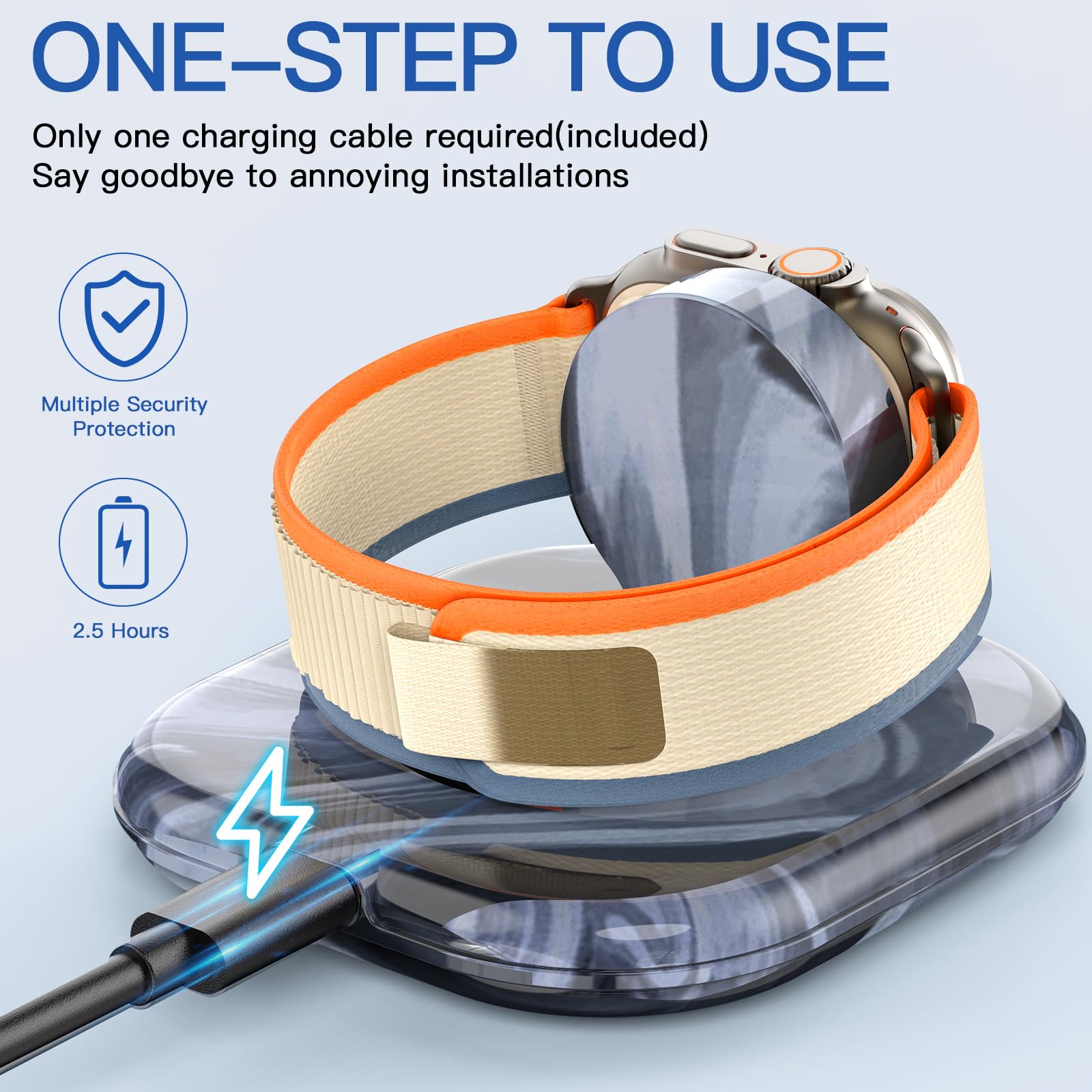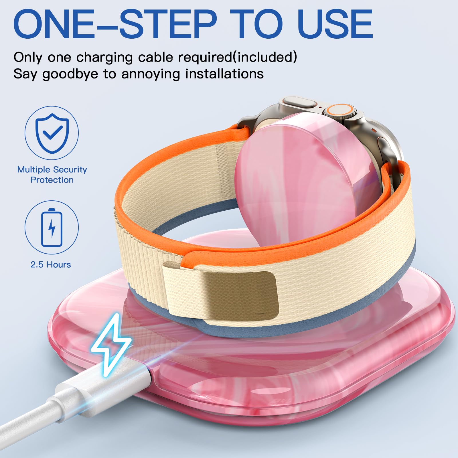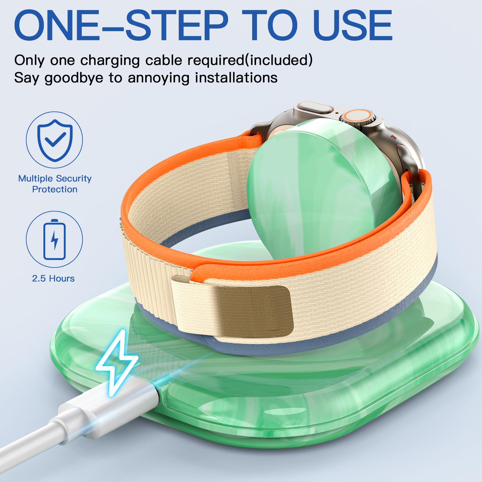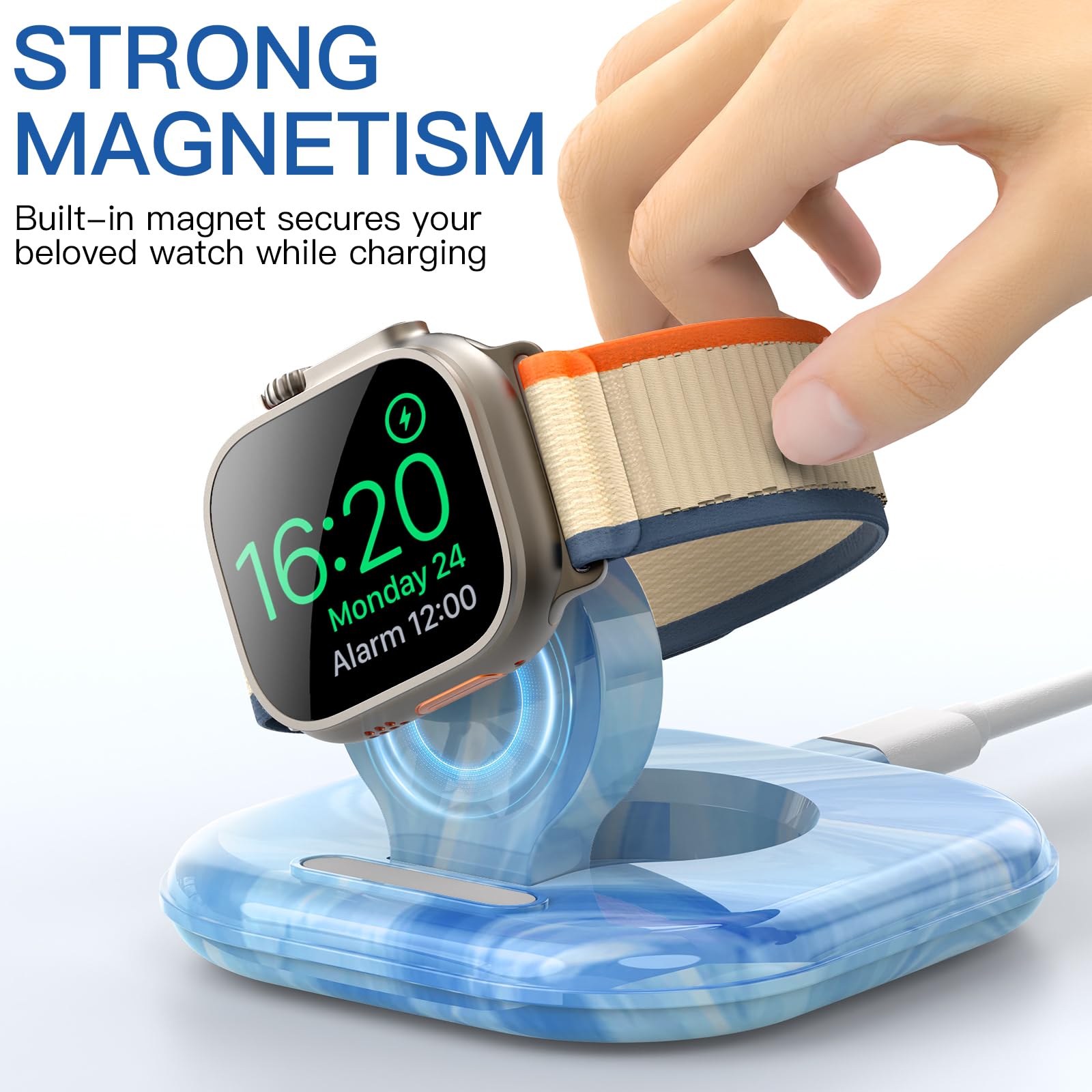 - Efficient Charging: Our Apple Watch wireless charger ensures your watch powers up quickly, whether you have a Series 2 or the latest Apple Watch Ultra. Designed for efficient charging, it helps you save time and stay ready to go with a fully charged device