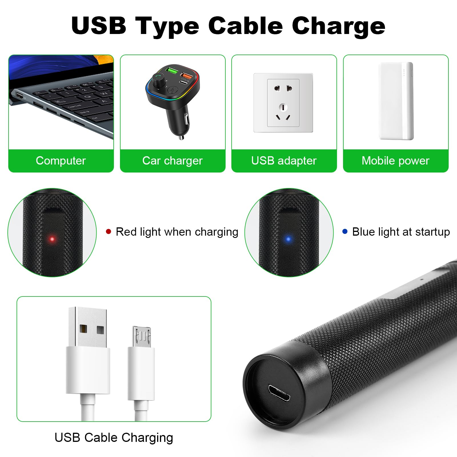- 【Convenient Charging】Equipped with a USB charging port, our laser pointer has high power is easy to recharge. Simply unscrew the bottom cap, plug it into any standard USB port—whether it's a computer, wall adapter, or power bank—and you're ready to go.