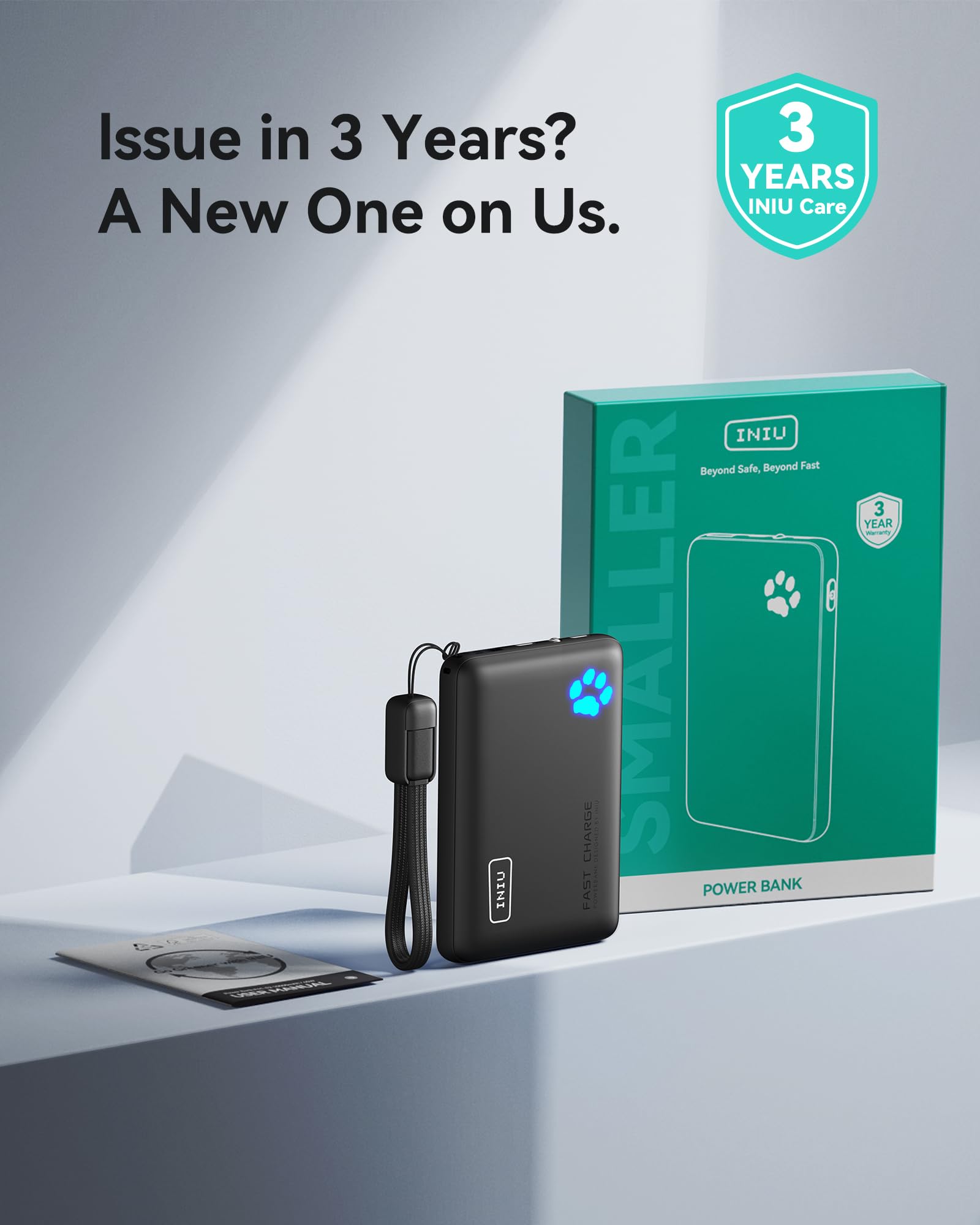 - What You Get: INIU 10000mAh portable charger*1, 0.12M/0.4ft Lanyard USB-C to USB-C Cable*1, user manual*1, and Industry-Leading 3-Year INIU Care, plus Lifetime Technical Support.