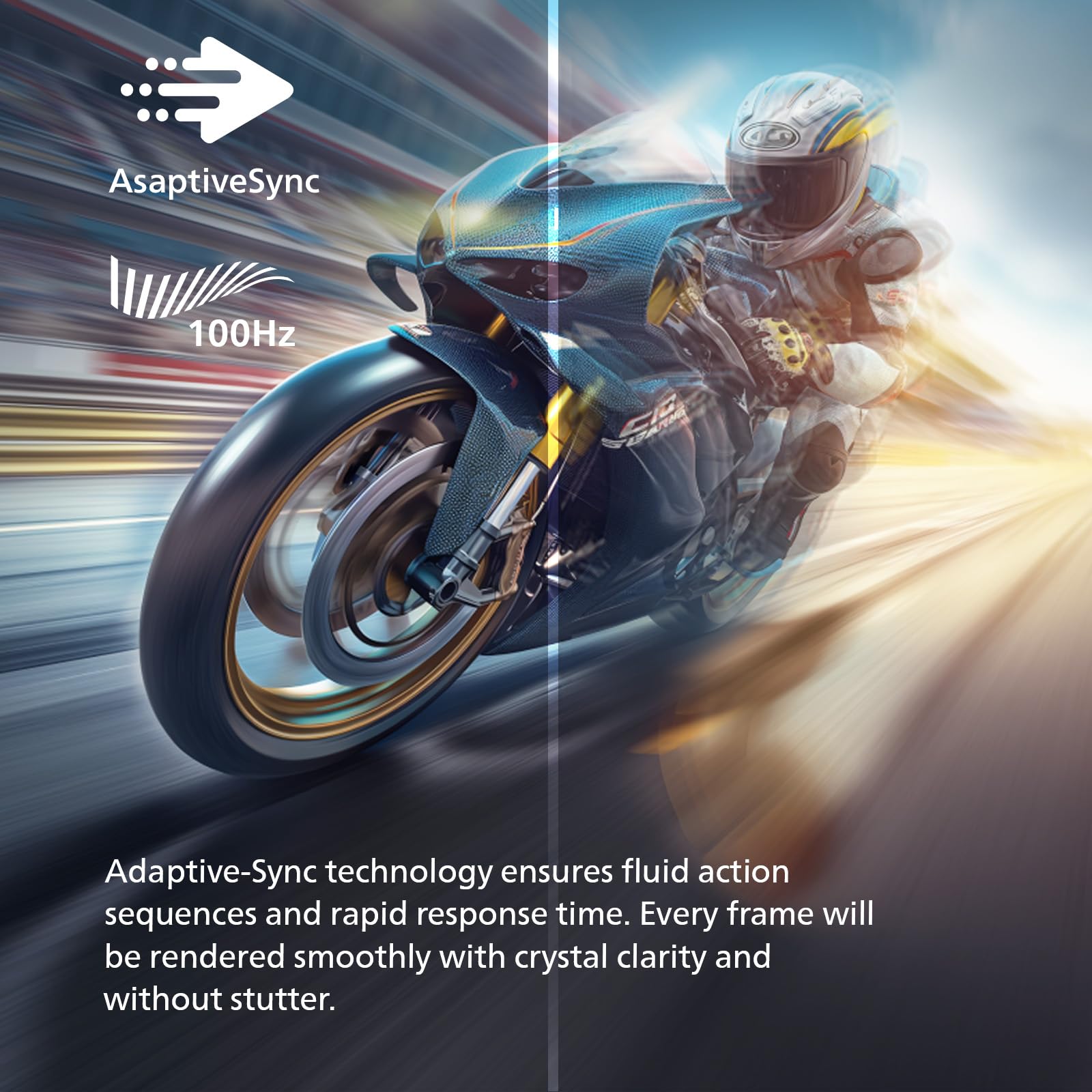 The Philips 241V8LB 24-inch class monitor boasts Full HD 1920x1080 picture quality for an incredible sense of depth and clarity. With a wide viewing angle VA display and 16.7 million colors, you get vivid images with detail from every vantage point. Switch from working to gaming seamlessly with 100Hz speedy refresh rate. Adaptive-Sync technology ensures fluid action sequences and rapid response time. Every frame will be rendered smoothly with crystal clarity and without stutter. Whether you’re a demanding professional requiring extremely detailed information for CAD-CAM solutions, using 3D graphic applications or a financial wizard working on huge spreadsheets, this display will make your work easier and more efficient. Philip LowBlue Mode and flicker-free technology protects your eyes from harmful blue rays and prevents eye fatigue.