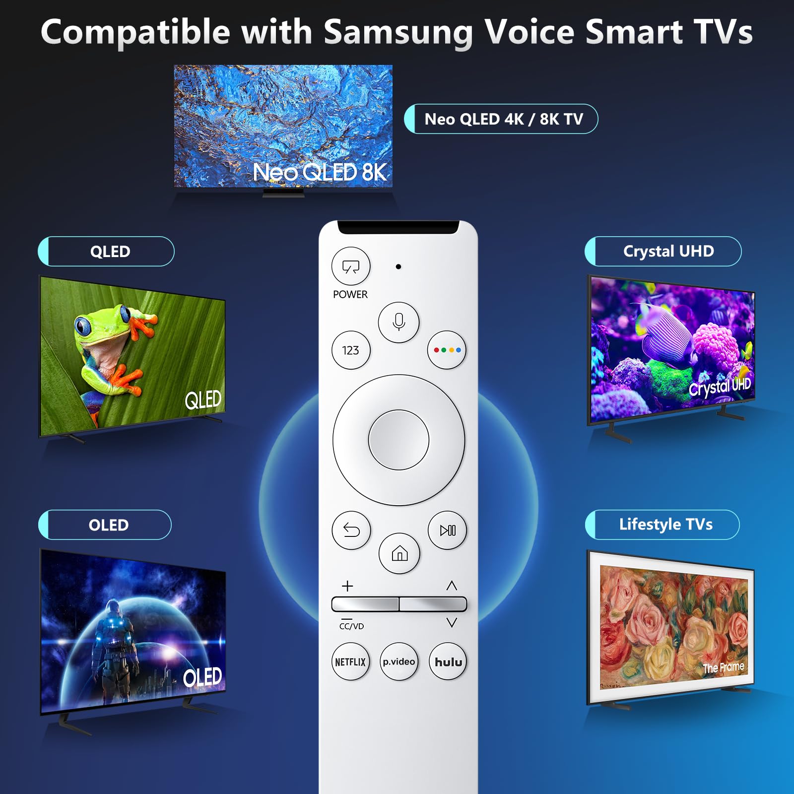 - Upgrade Your TV Experience with a Universal for Samsung Remote Control Compatible with a wide range of Samsung TVs and smart monitors, including: for Samsung Frame, Crystal UHD, Neo QLED, OLED, 4K, and 8K Smart TVs Smart Monitors: M80C, M70C, M50C, G70B, M70B, G7, S9, G85SB, and more