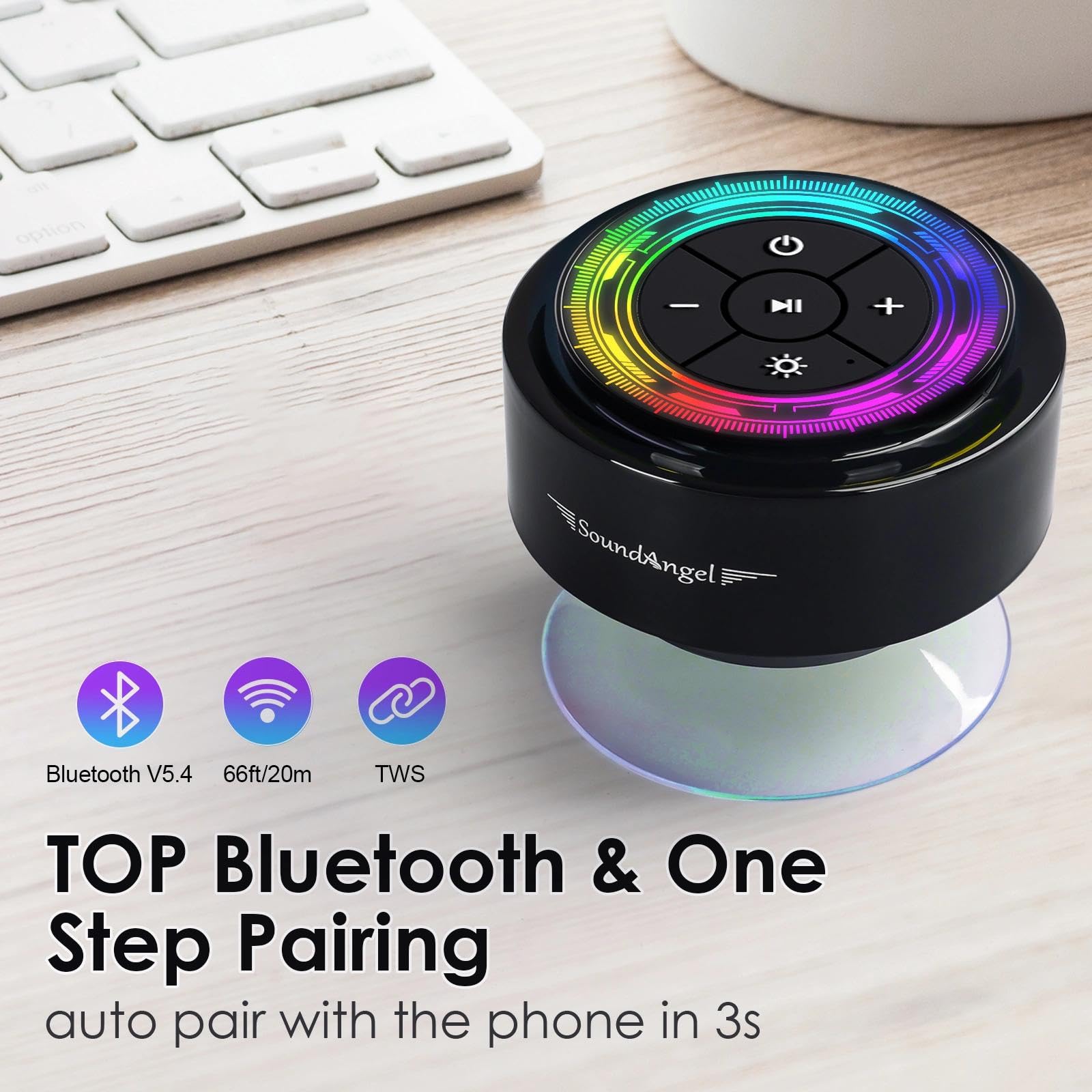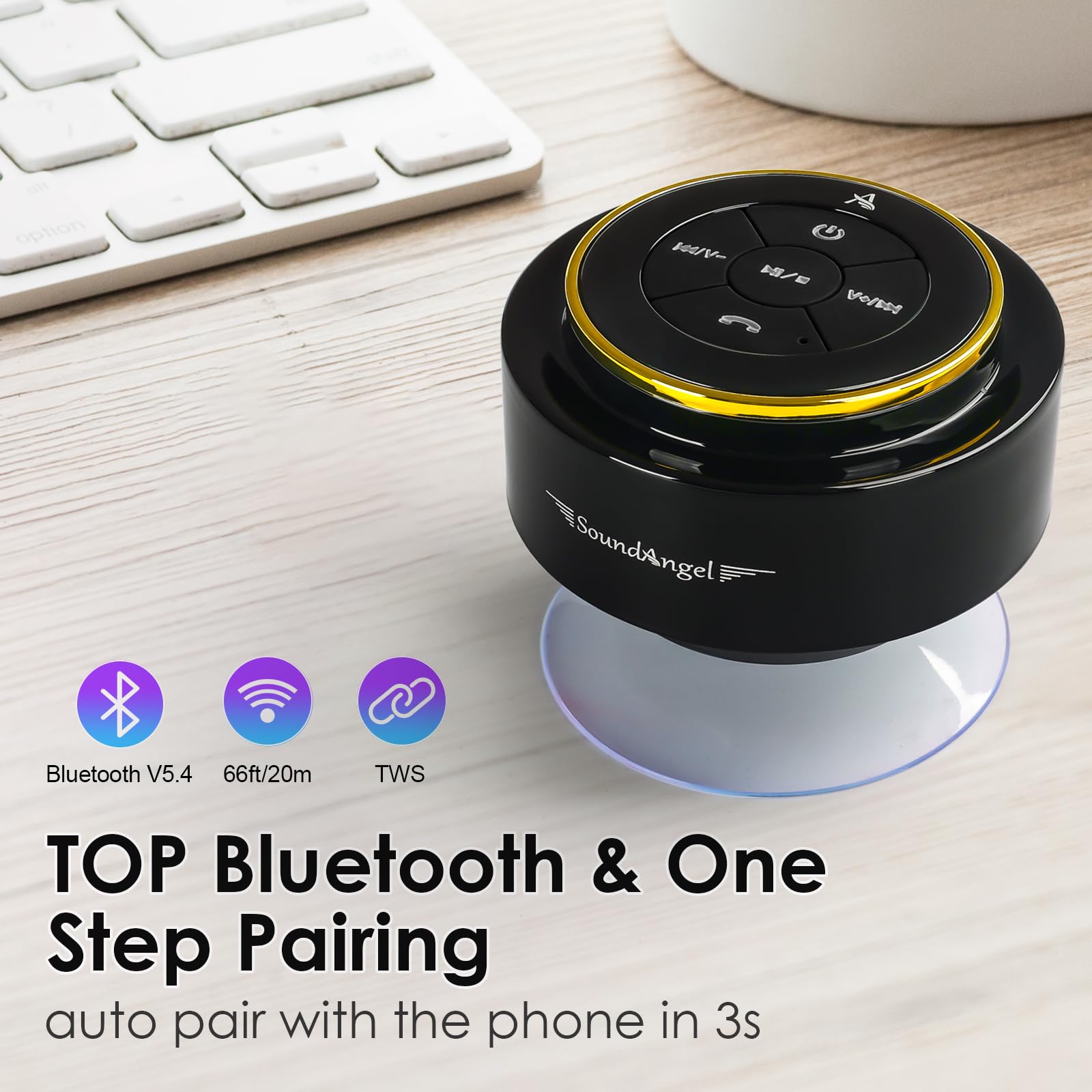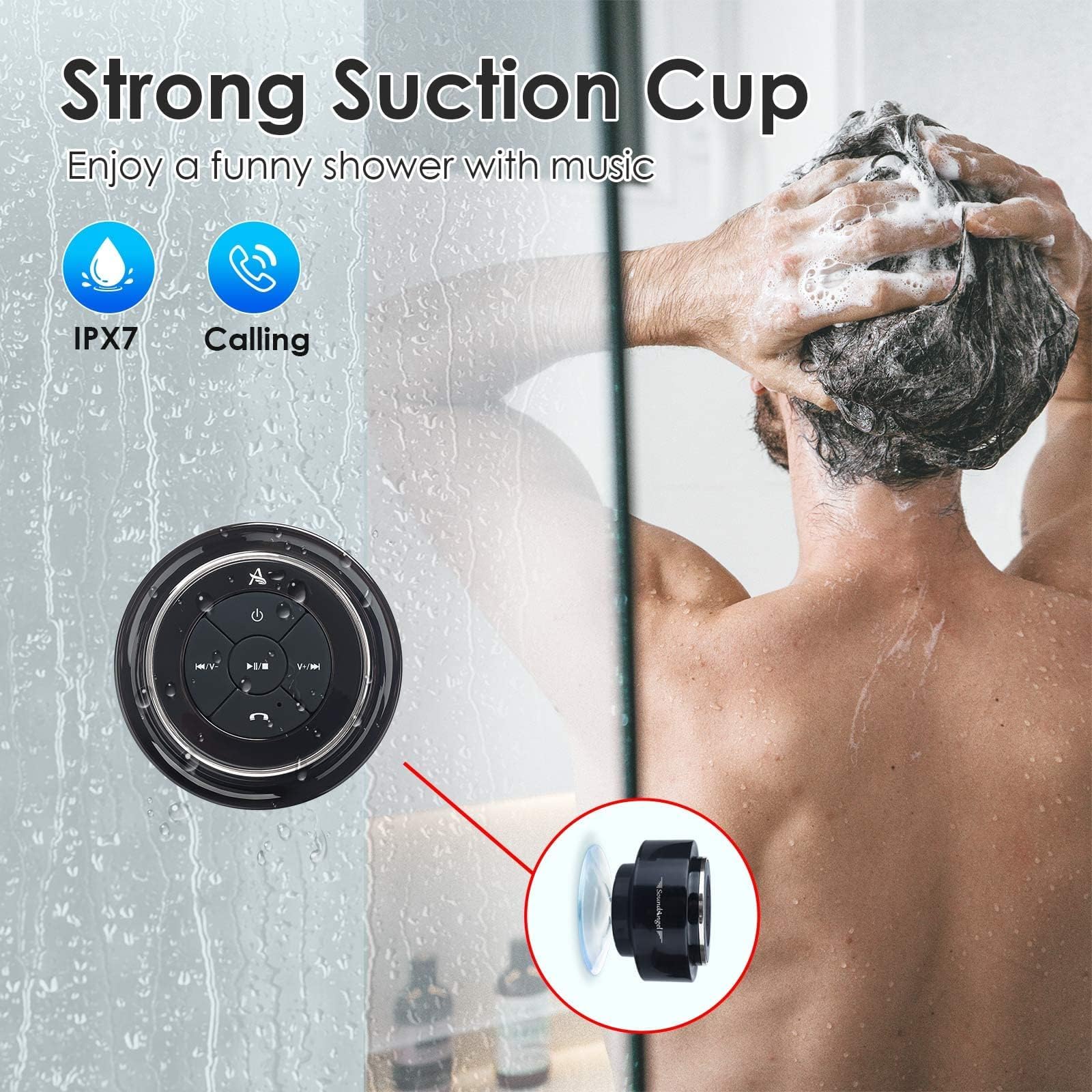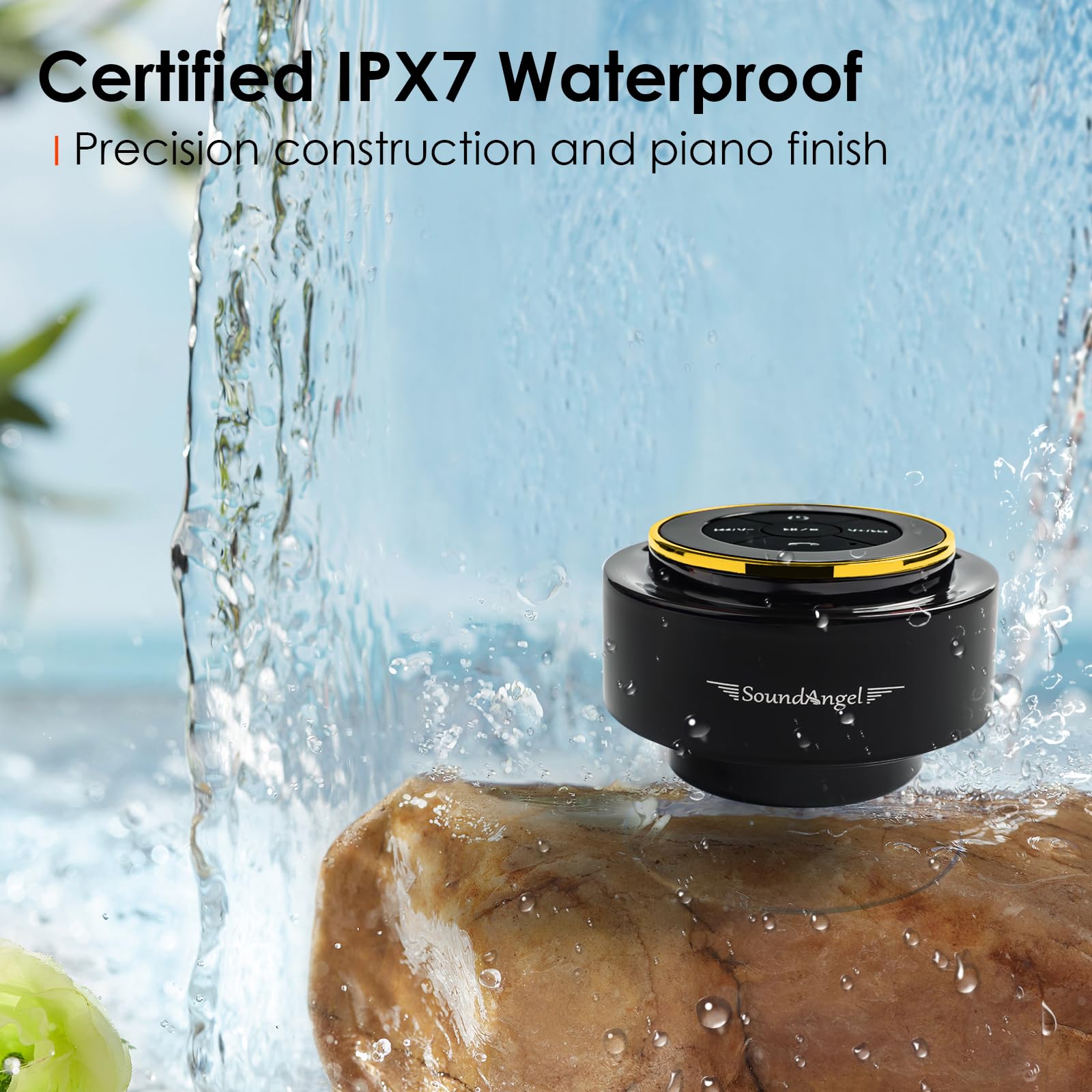- ♬【Best Popular Shower speaker- A Premium Gift】 SoundAngel Mate has a small and compact size, classic and exquisite shape, comfortable and excellent sound quality, and amazing waterproof performance, and with CE, FCC, ROHS and Waterproof certifications, it's guaranteed to last.